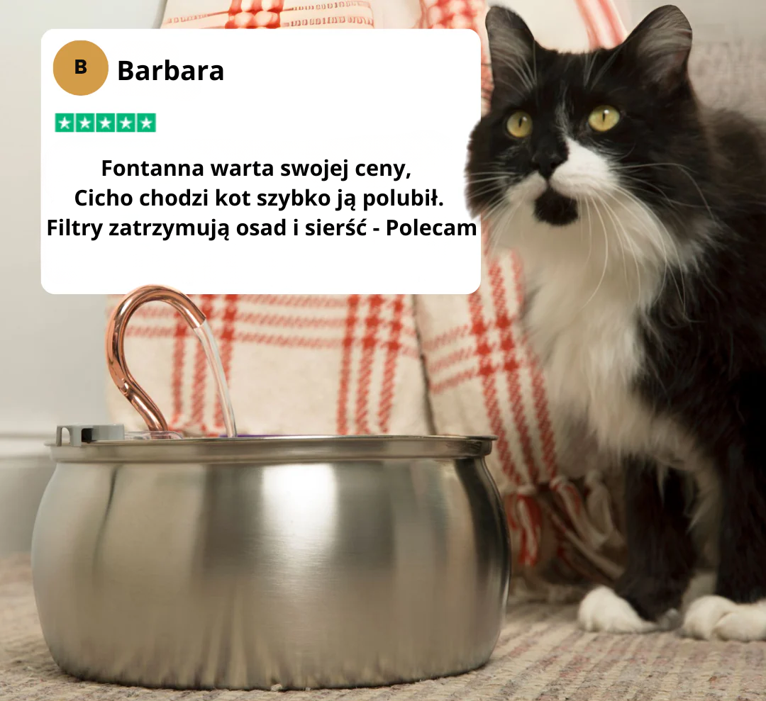 Velvio zostało zaprojektowane tak, by odwzorowywać naturalne, płynące źródło wody — instynktownie przyciąga koty i psy. Z doświadczenia klientów wynika, że większość zwierząt po kilku dniach aklimatyzuje się i chętnie korzysta z fontanny. Dodatkowo możesz zachęcić kota, pokazując mu działanie urządzenia i stawiając je w znanym miejscu.