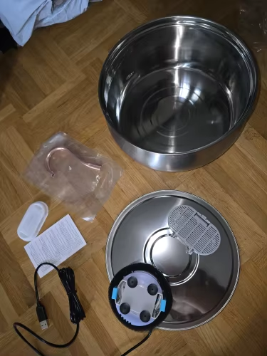 Standardowa długość kabla to około 1,5 metra, co pozwala wygodnie ustawić fontannę w dowolnym miejscu, także z dala od kontaktu.